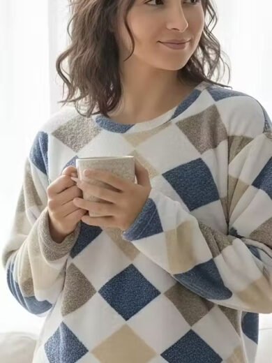 Trendy Quilted Look Warm Night Suit/Loungewear | Women's Cozy Print Fleece Night Suit Set | Winter Collection