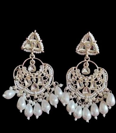 White pearl gold plated earrings